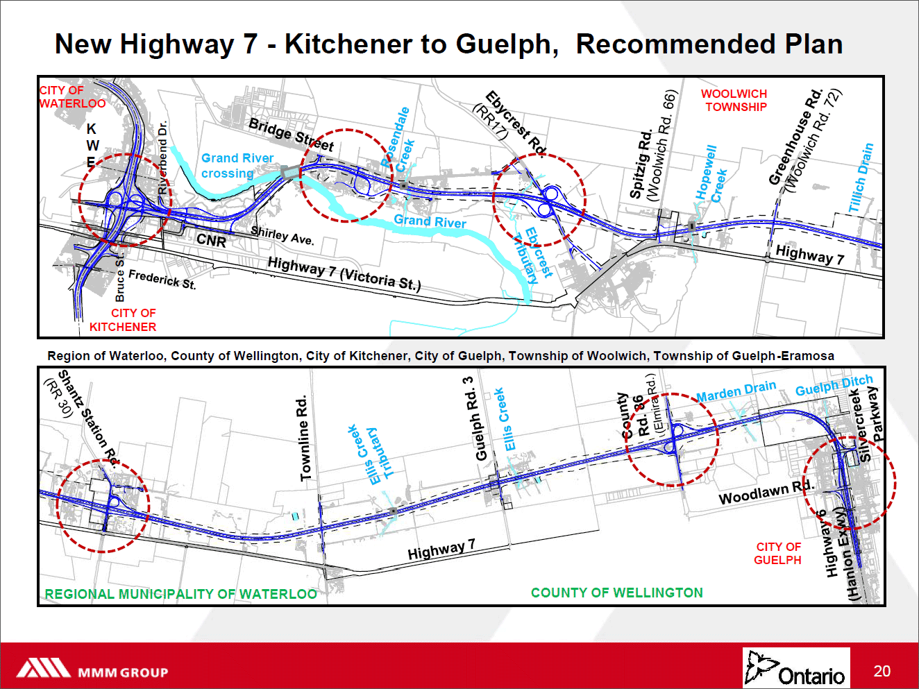 Update: With work on Highway 7 expected to begin in 2015, there appears to be little chance of a change in plans for the road corridor. However, your support is still needed to ensure transit connections are prioritized between Waterloo Region, Guelph, and the rest of the GTA, including two-way all-day GO train service. Contact your representatives today.