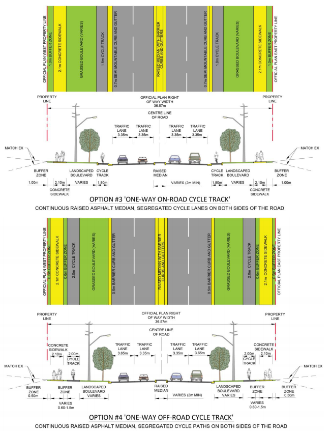 The Region is considering changes to Fischer-Hallman in south Kitchener, and are hoping to include new bicycling and walking infrastructure in the design. The area is planned by the City of Kitchener as a future mixed-use corridor. New options being considered are multi-use paths, on-road protected bike lanes with raised curbs, and off-road protected bike lanes.