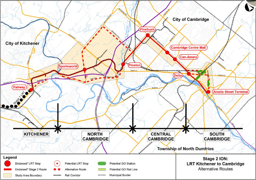 Help the Region of Waterloo plan Stage 2 of ION light rail from Kitchener to Cambridge. The Region is conducting a Transit Project Assessment and needs your opinions and input at two upcoming public consultations: