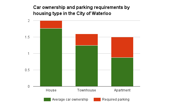 Car ownership figures for the City of Waterloo are from the 2011 Transportation for Tomorrow Survey, provided by the Data Management Group at the University of Toronto.