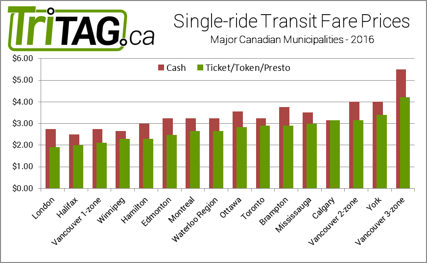 Cash and Ticket prices in municipalities across Canada
