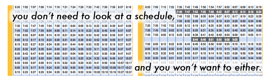 If buses come every 10 minutes, you don’t need to look at a schedule, and you won’t want to either.