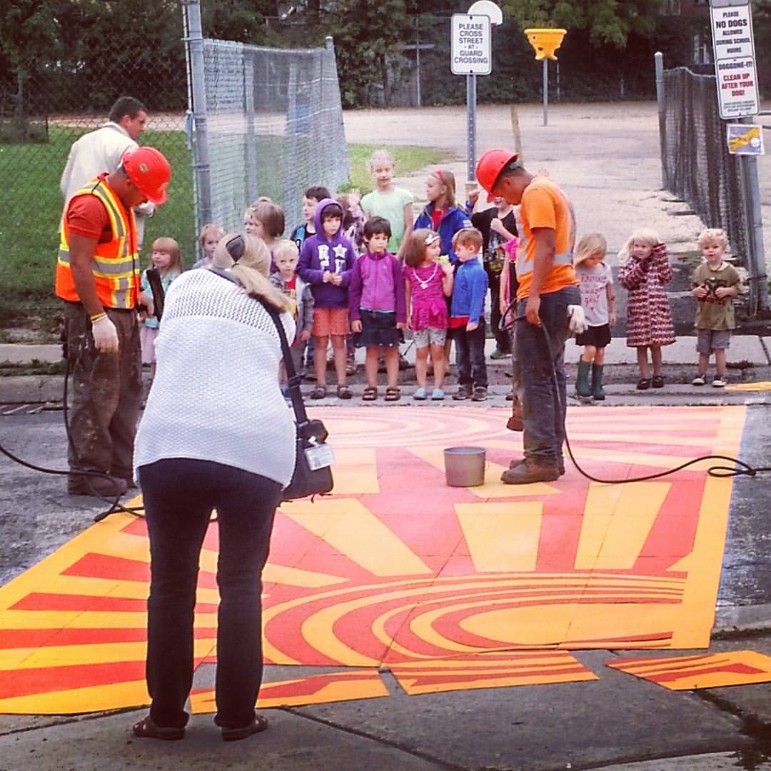 Traffic calming: Sunny Kitchener mural shines a light on fast drivers at Lancaster and Chapel streets (CBC KW)