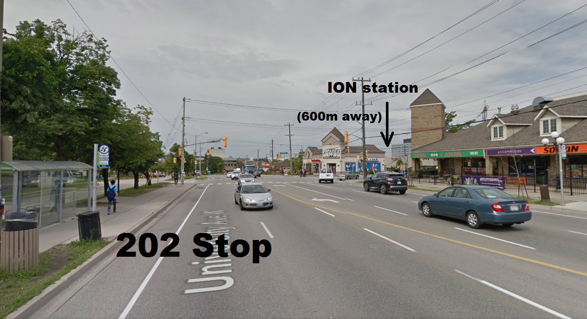 We must ensure that this connection happens. GRT needs to step up, and deliver a solution. And if GRT can’t bring the 202 to the UW transit plaza, then it should instead be routed to connect with ION at the Laurier-Waterloo Park station on Seagram drive.