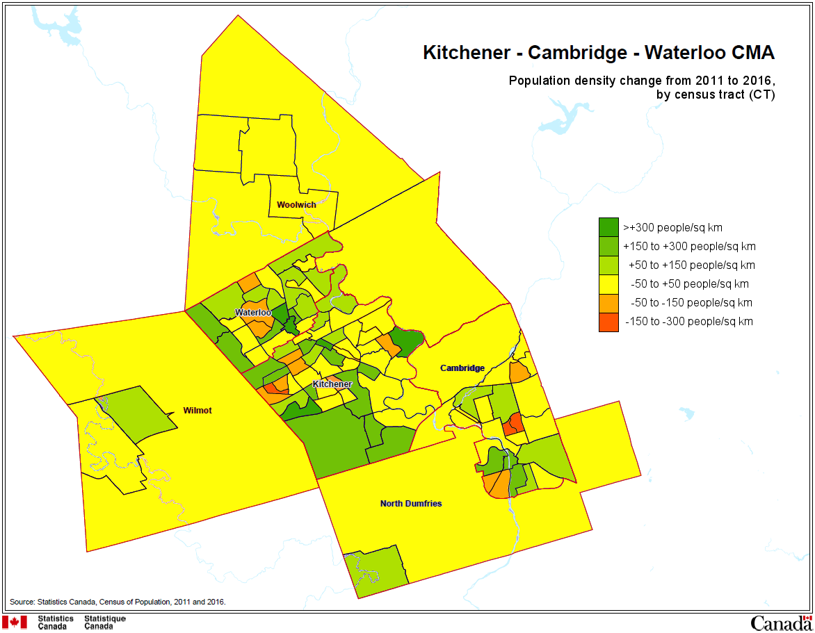 Population counts from the 2016 Census were published Wednesday, revealing a trend of growth toward urban centres. Waterloo Region grew by 5.5% from 2011-2016, with the Northdale neighbourhood more than doubling in size, thanks to increased density allowances, mixed-use zoning, and reduced parking requirements. Other figures from the long-form census, including transportation mode shares, are expected to be published late in the year.